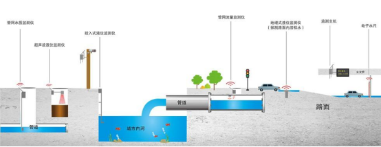 城市排水管網(wǎng)監(jiān)測(cè)系統(tǒng)架構(gòu)示意圖